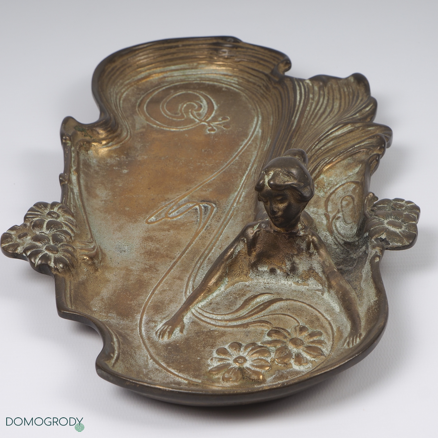 Mosiężna patera w stylu secesyjnym. Wyprodukowana w latach 60/70-tych. Stan bardzo dobry – vintage.