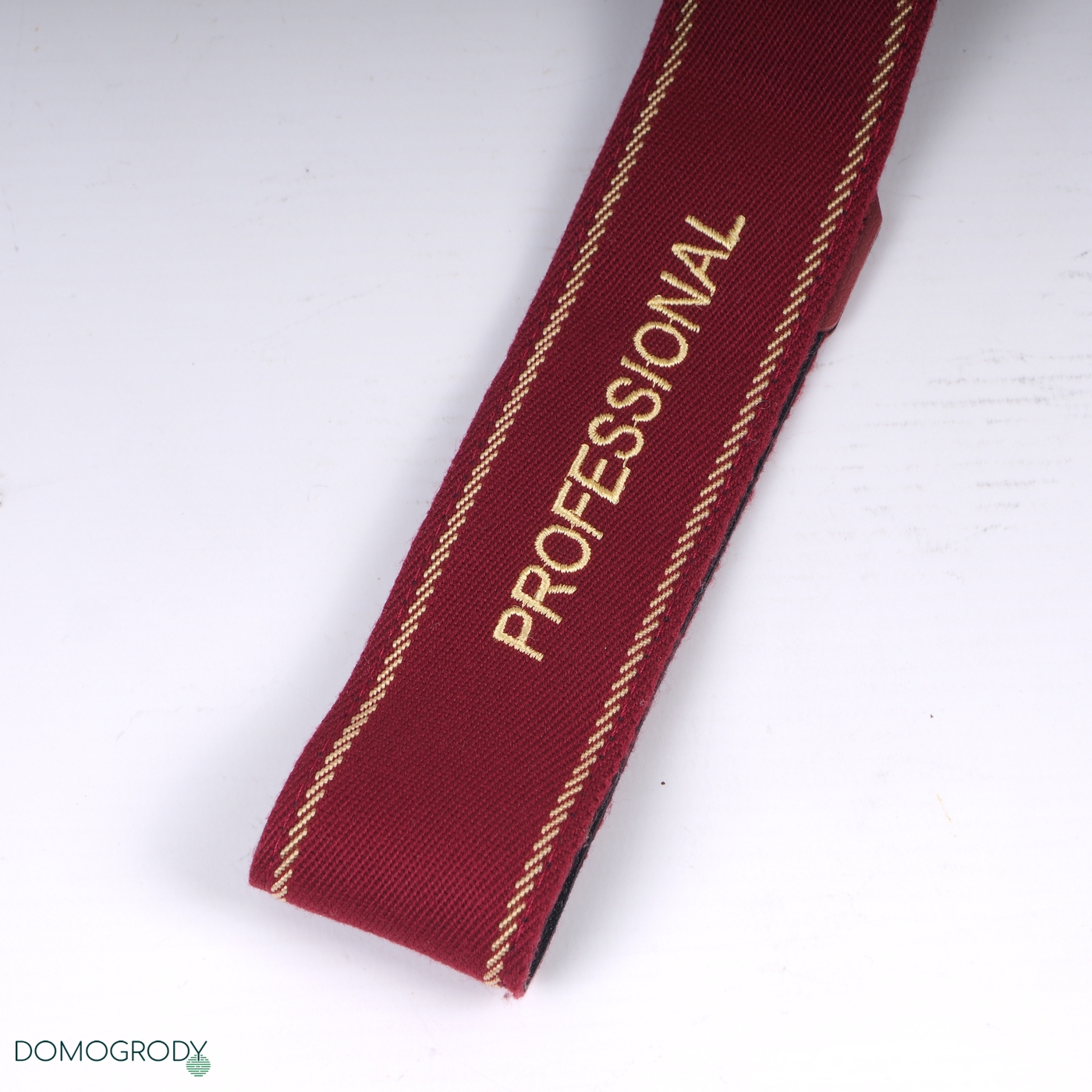 Oryginalny pasek na szyję do aparatu Canon F1. Kolor bordowo – żółty z napisem „Canon Professional” Stan bardzo dobry – nie używany.