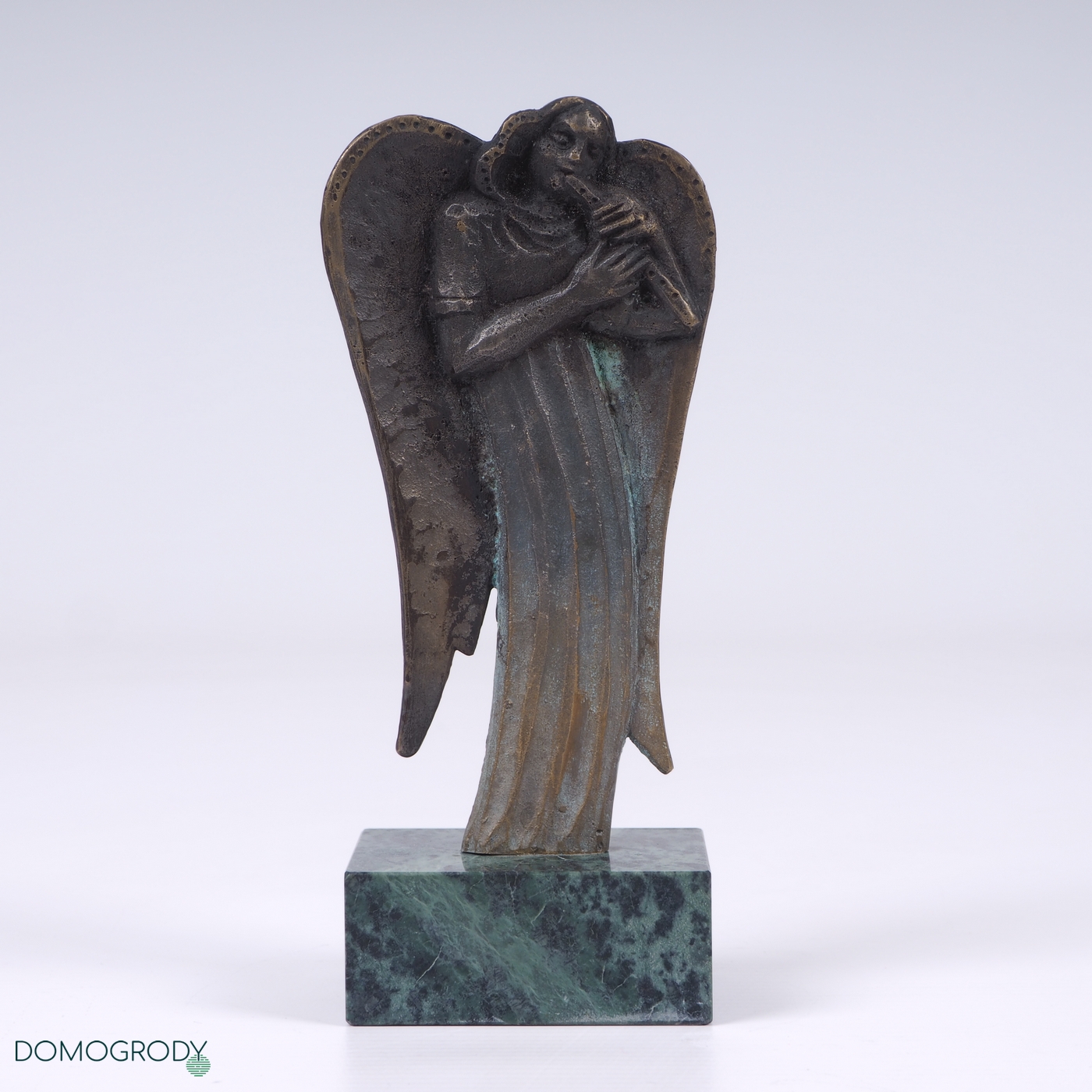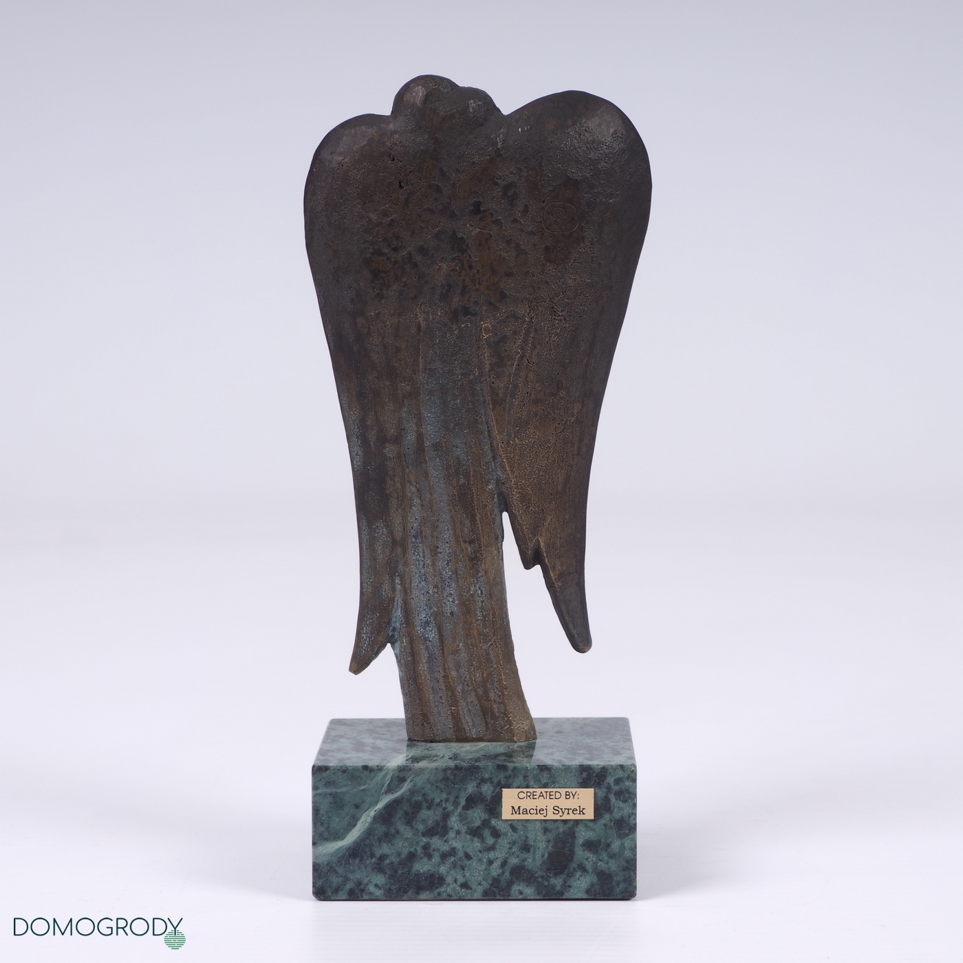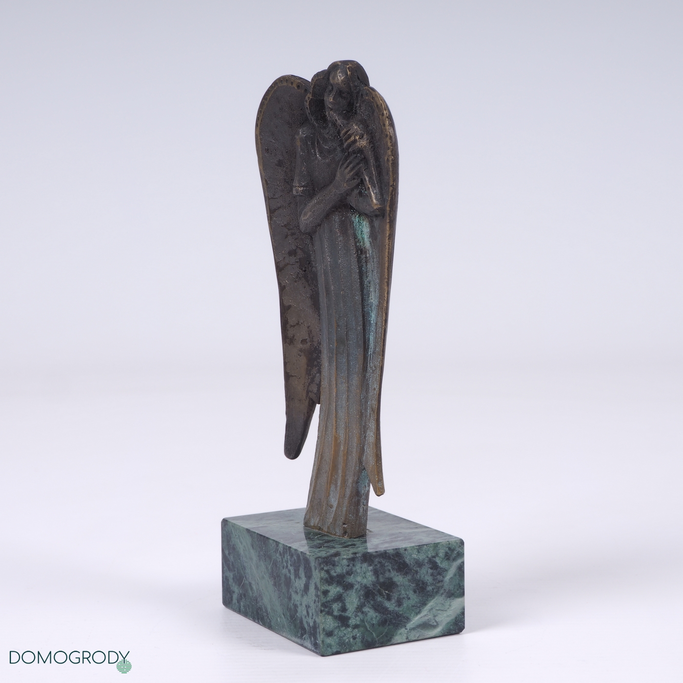 Rzeźba Anioł, brąz patynowany, postument granitowy. Sygnwatura z tyłu rzeźby. Stan bardzo dobry.