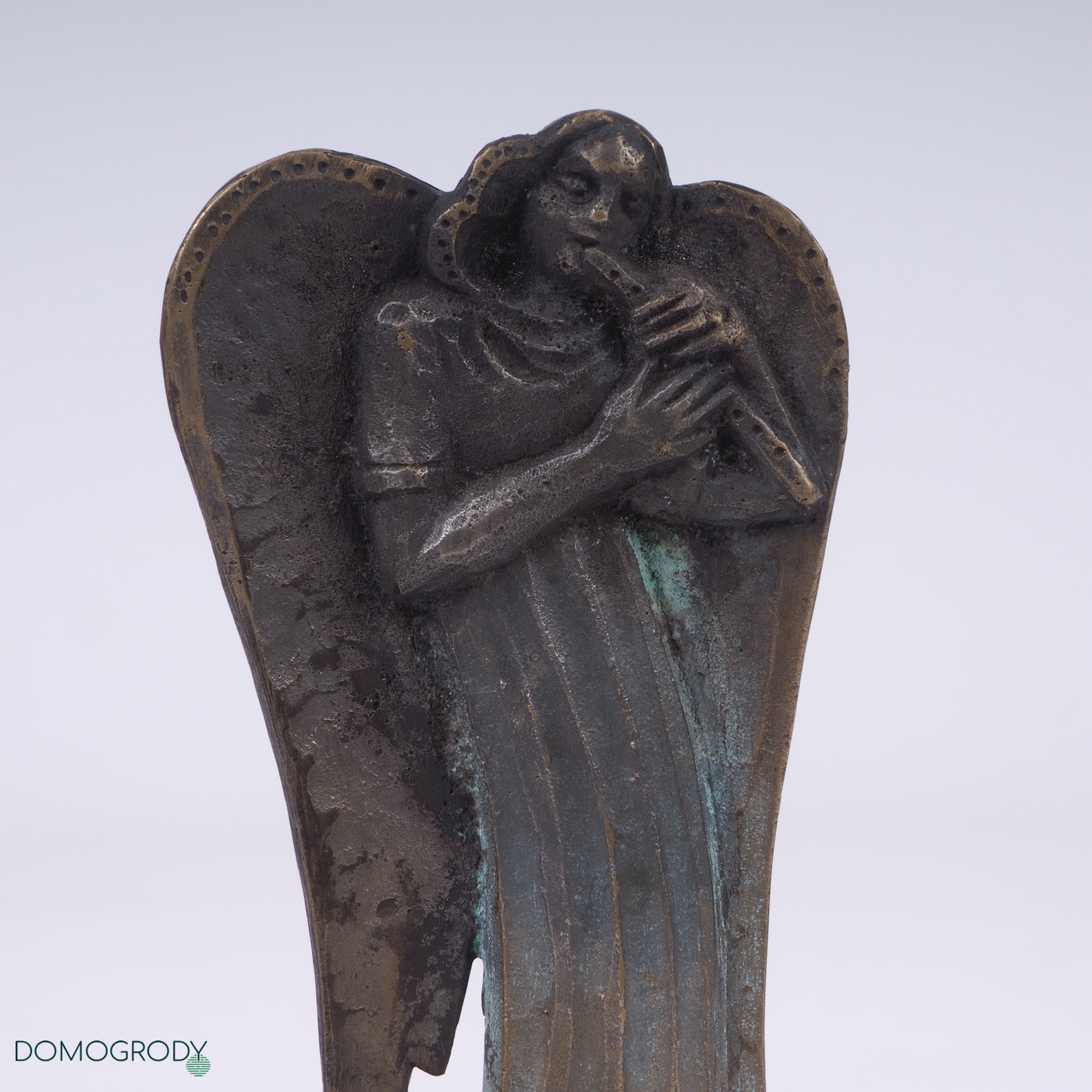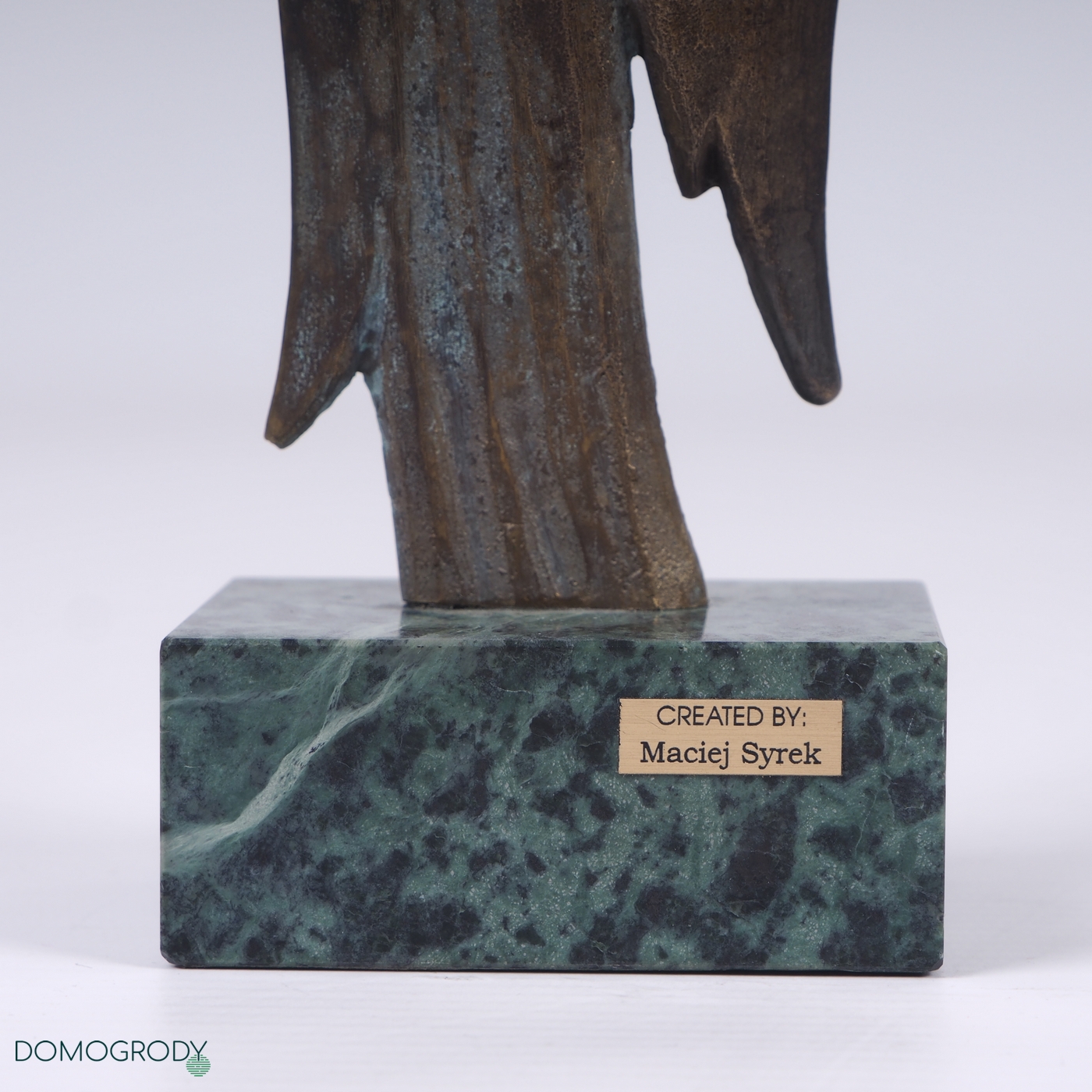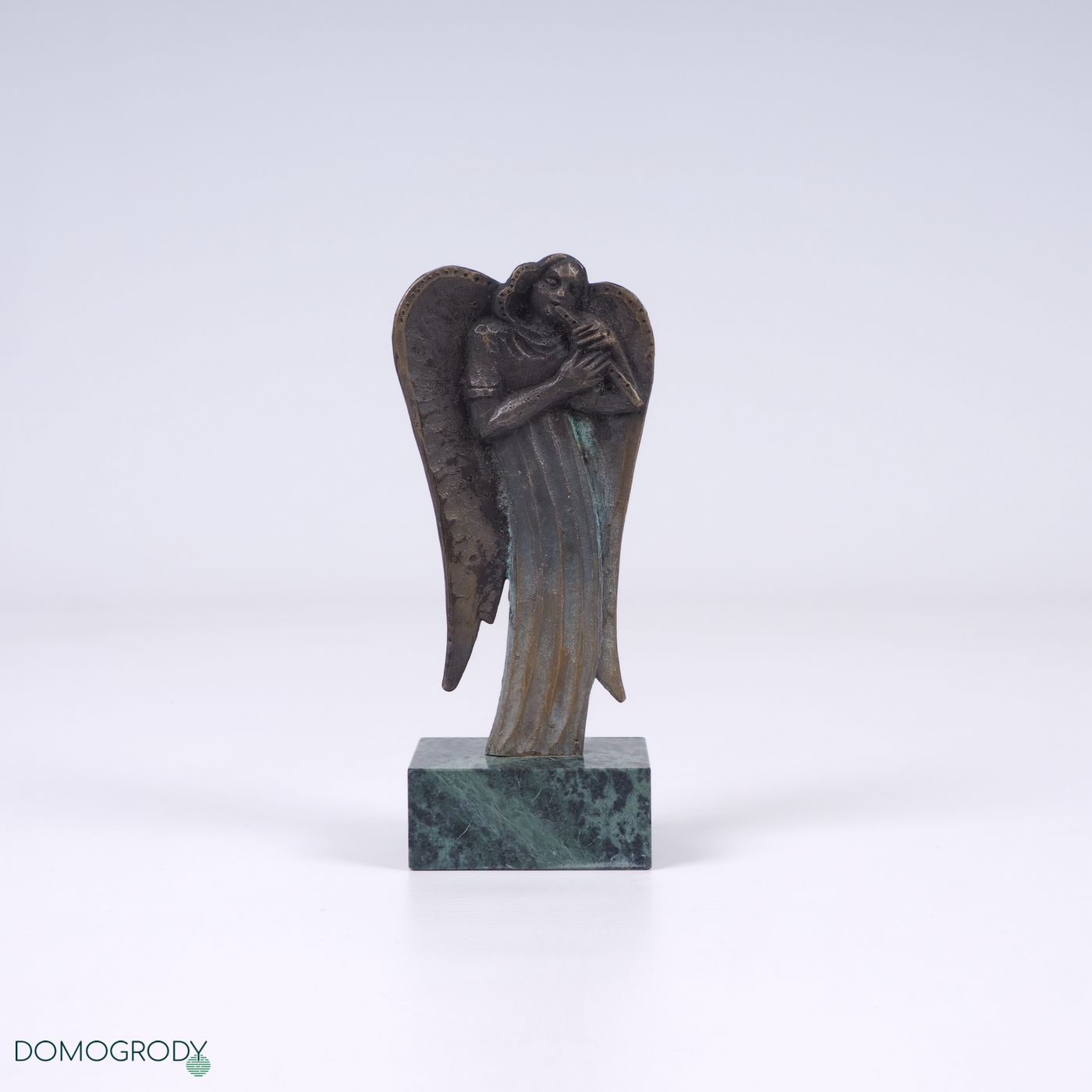 Rzeźba Anioł, brąz patynowany, postument granitowy. Sygnwatura z tyłu rzeźby. Stan bardzo dobry.