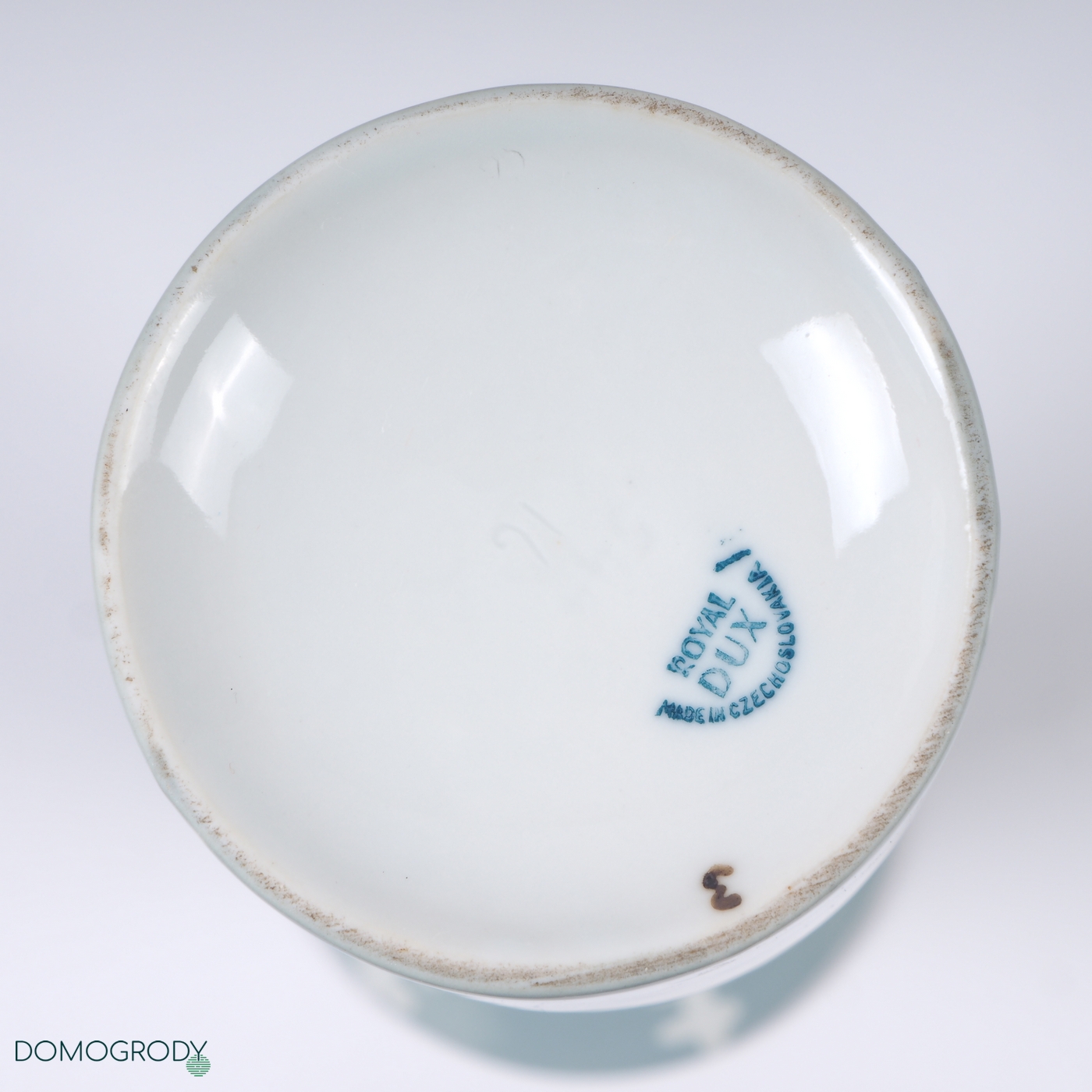 Wazon porcelanowy wyprodukowany przez Royal Dux w Czechosłowacji w latach 60-tych. Projekt Jindrich Marek. Stan bardzo dobry z minimalnymi śladami użytkowania. Na podstawie sygnatura.